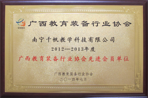 南寧千帆教學(xué)科技有限公司榮獲廣西教育裝備行業(yè)協(xié)會授予“2012-2013年度廣西教育裝備行業(yè)協(xié)會先進(jìn)會員單位”稱號。